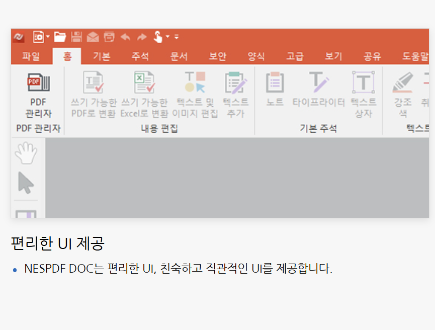 NesPDF는 PDF 편집, 변환, 읽기, OCR 기능을 모두 지원하는 Windows 전용 프로그램으로, 친숙하고 직관적인 UI를 자랑합니다.