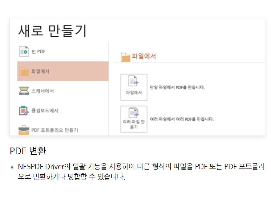설치 시 함께 제공되는 nespdf driver는 PDF 프린터 역할을 하며,