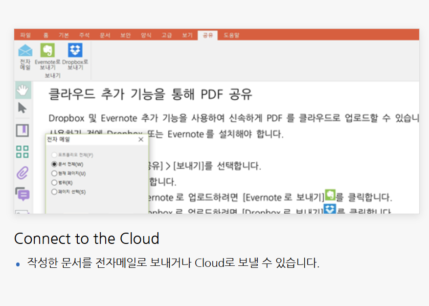 - PDF 병합: 여러 파일을 하나로 합칠 수 있음