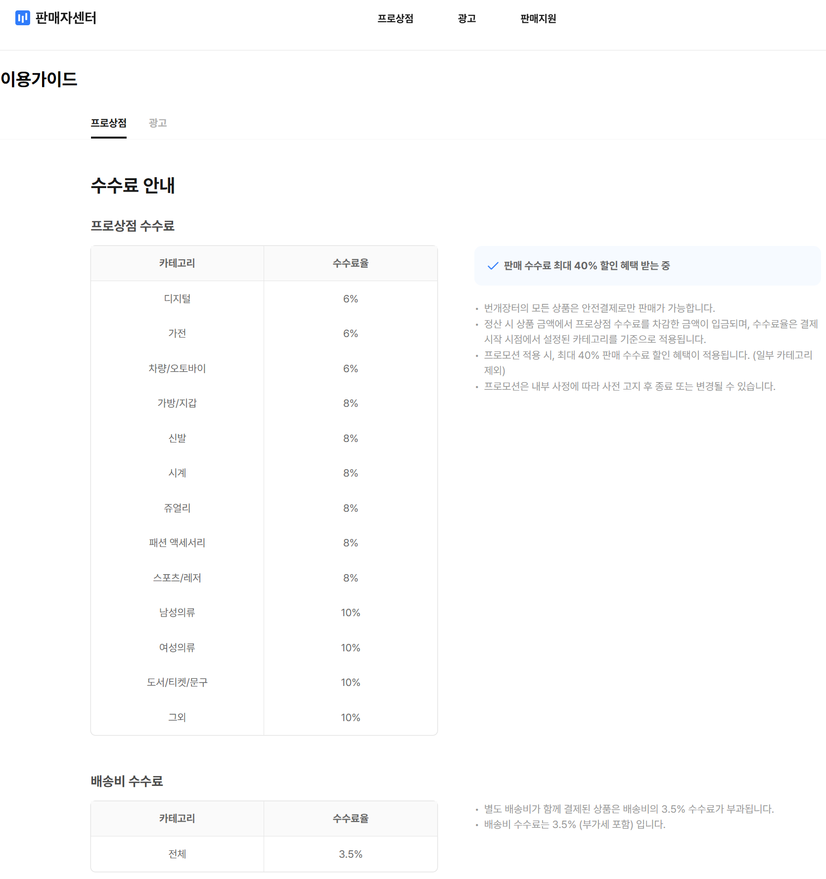 | 일반 판매자 | 3.5% | 6% (2025.09 적용) | 일반 개인 판매자 대상 |