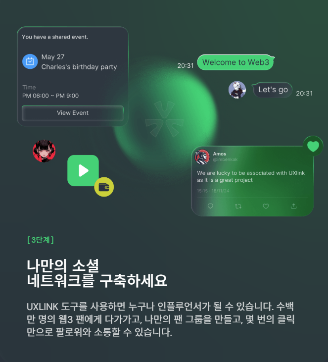 유엑스링크는 실사용자 네트워크 기반 Web3 소셜 플랫폼으로, 그룹 커뮤니티 활동을 통해 데이터가 축적되고 토큰 이코노미가 구축됩니다.