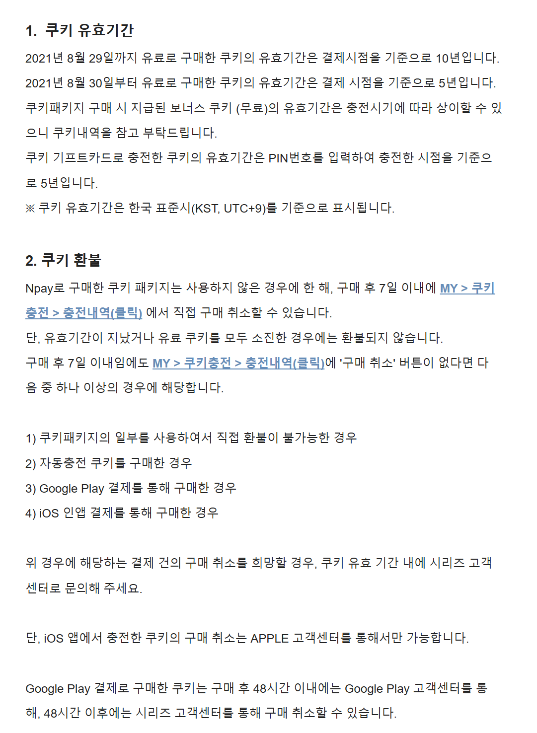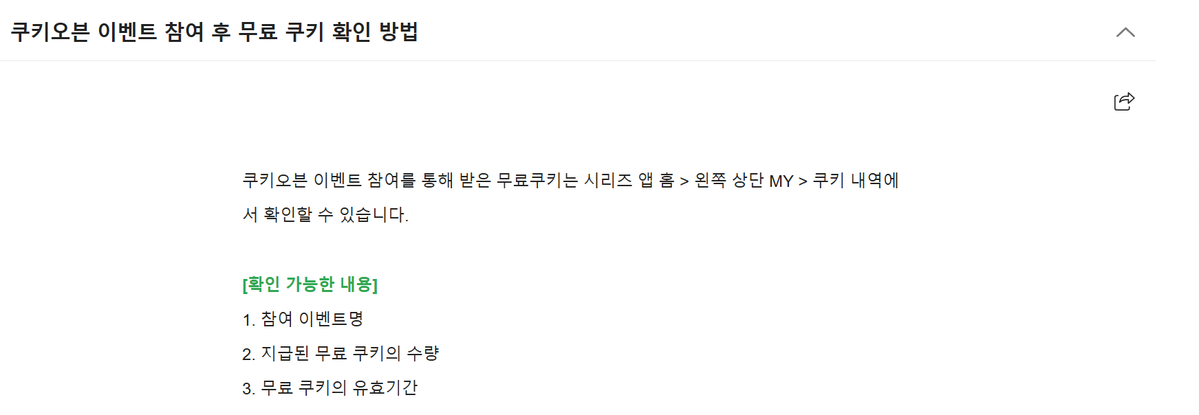 - 이벤트 쿠키는 유료쿠키와 사용 규칙이 다를 수 있음