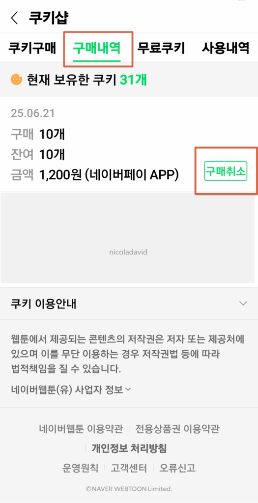 ✔ 네이버 웹툰 쿠키오븐 주문 취소 및 환불 안내(추가 설명)