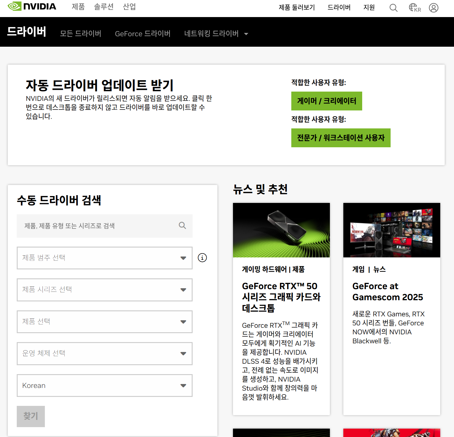 👉 https://www.nvidia.co.kr/Download/index.aspx