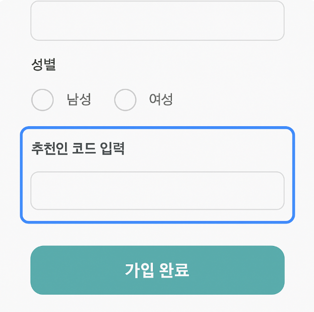 ✓ 신규 유저는 가입 시 1회 입력 가능
