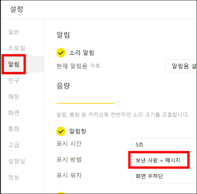 ✔ Q5. 카톡 알림을 특정 사람에게만 조용히 보낼 수 있나요?