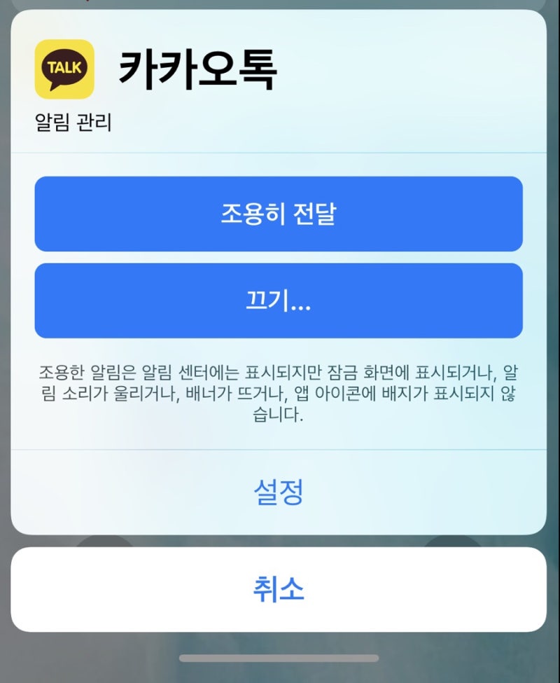 아이폰에서는 카카오톡 메시지가 다음과 같은 상황에서 무음으로 도착할 수 있습니다.