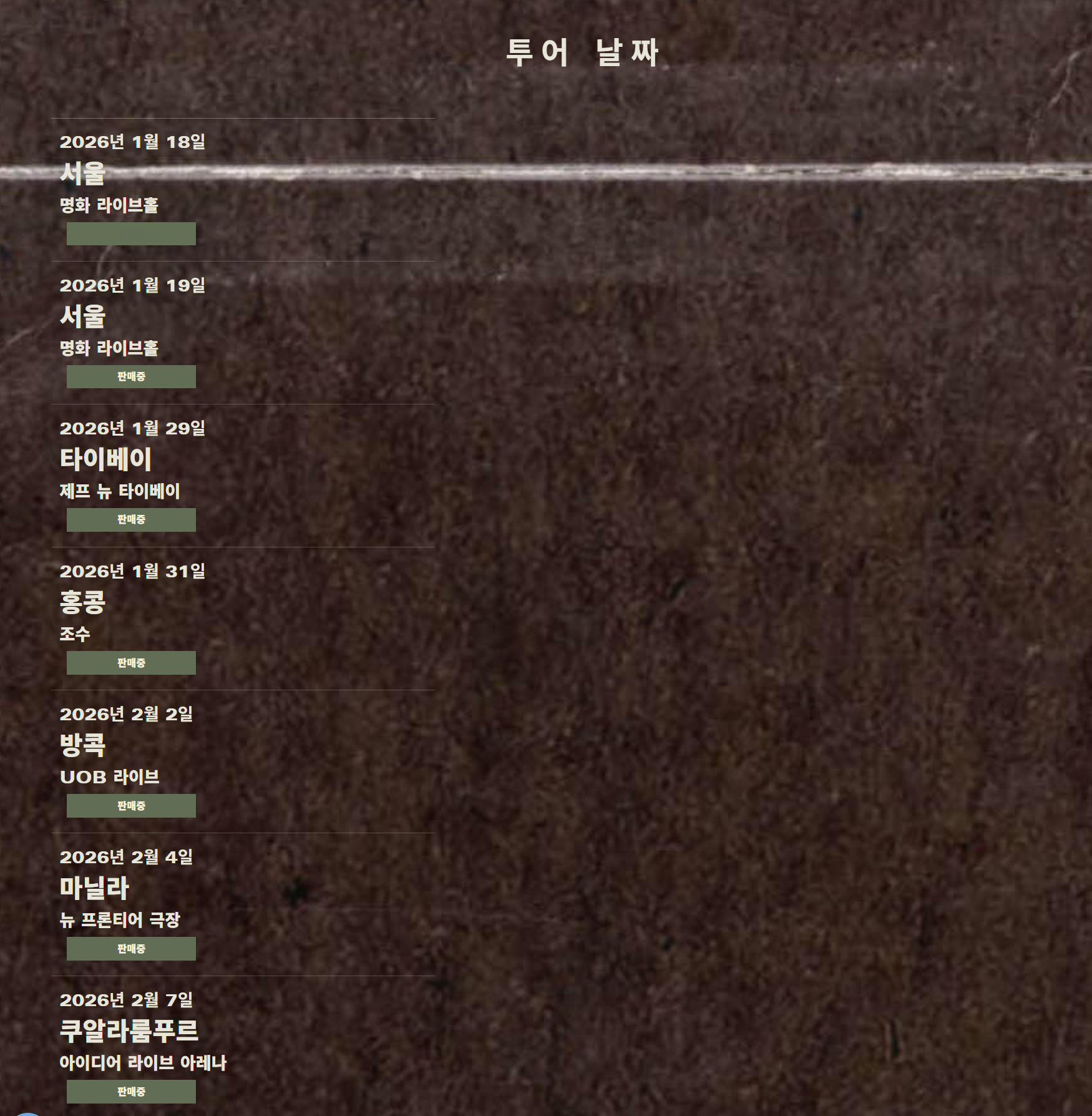 - 전 세계 투어 일정 확인 가능