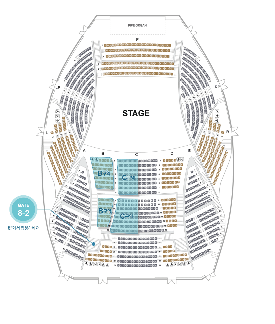 - 피해야 할 좌석: 측면 끝 시야방해석