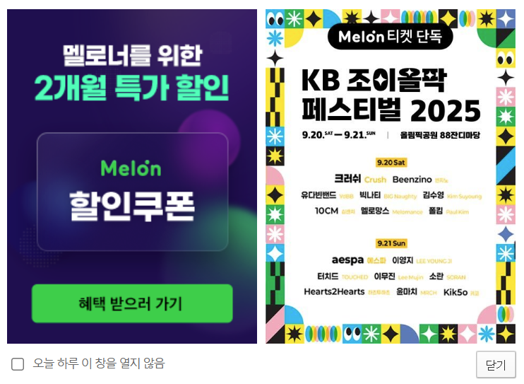 - 멜론 티켓 동시접속이 감지되면 자동 로그아웃될 수 있으니 한 기기만 이용해야 함