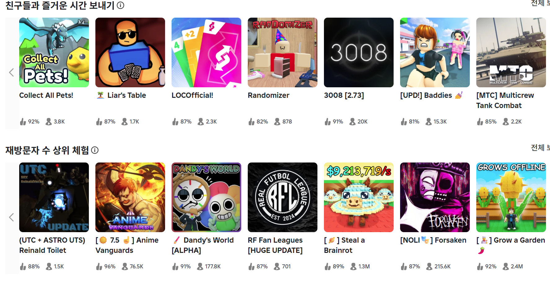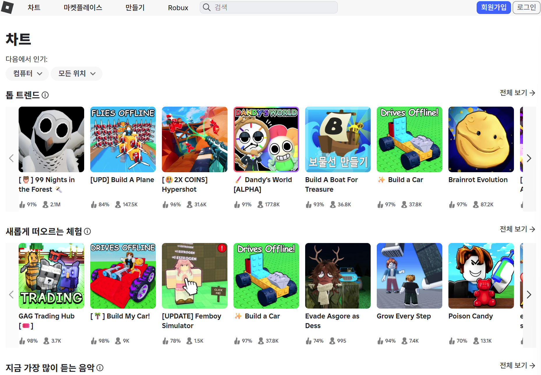 - 로블록스 게임 페이지 : https://www.roblox.com/ko