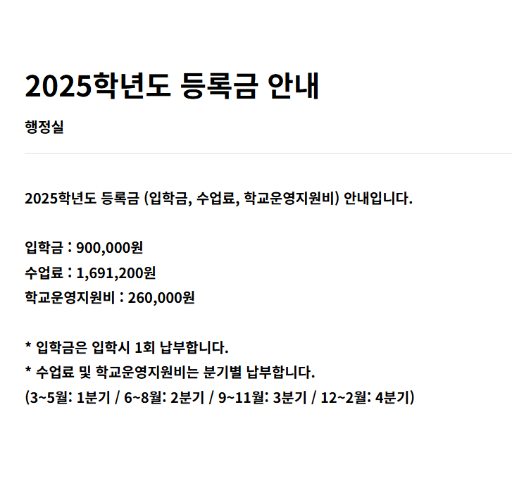 - 행정실: 학비·증명서·행정 업무 담당