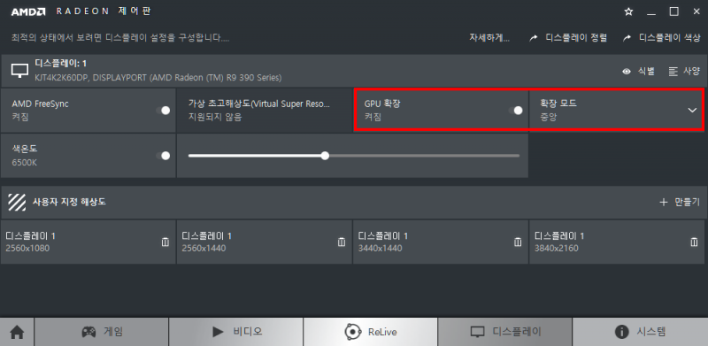- 그래픽 드라이버의 전체화면 스케일링 방식 충돌