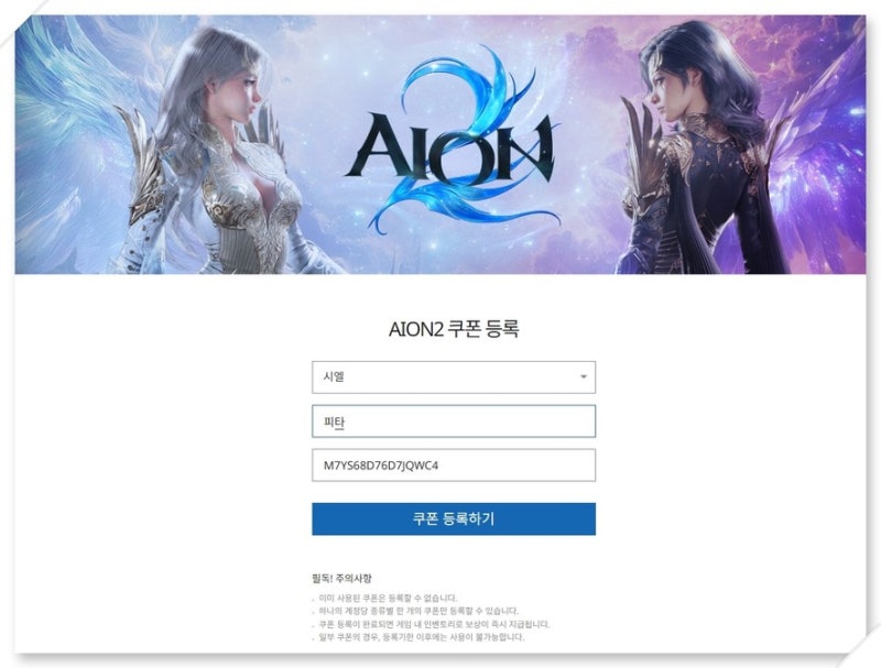 아이온2 쿠폰등록 사이트 (공식)
