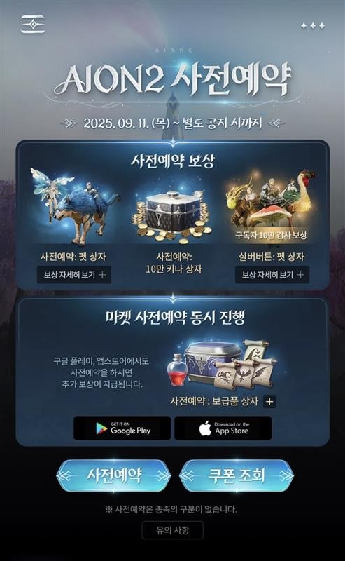 아이온2 사전예약 쿠폰 받는 방법