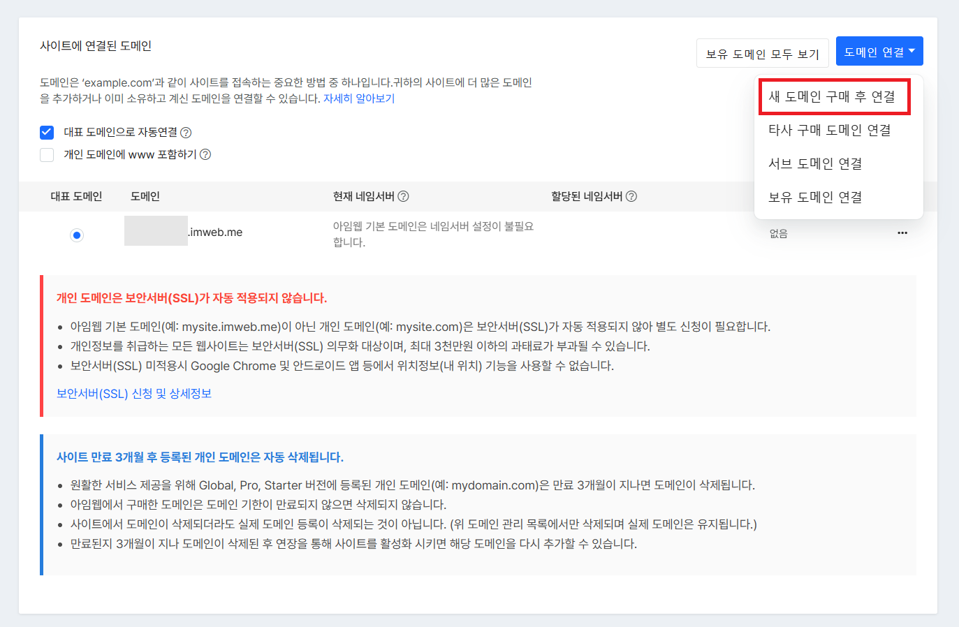 - 아임웹 도메인 연결: 타사 도메인/아임웹 구매 2가지 방법