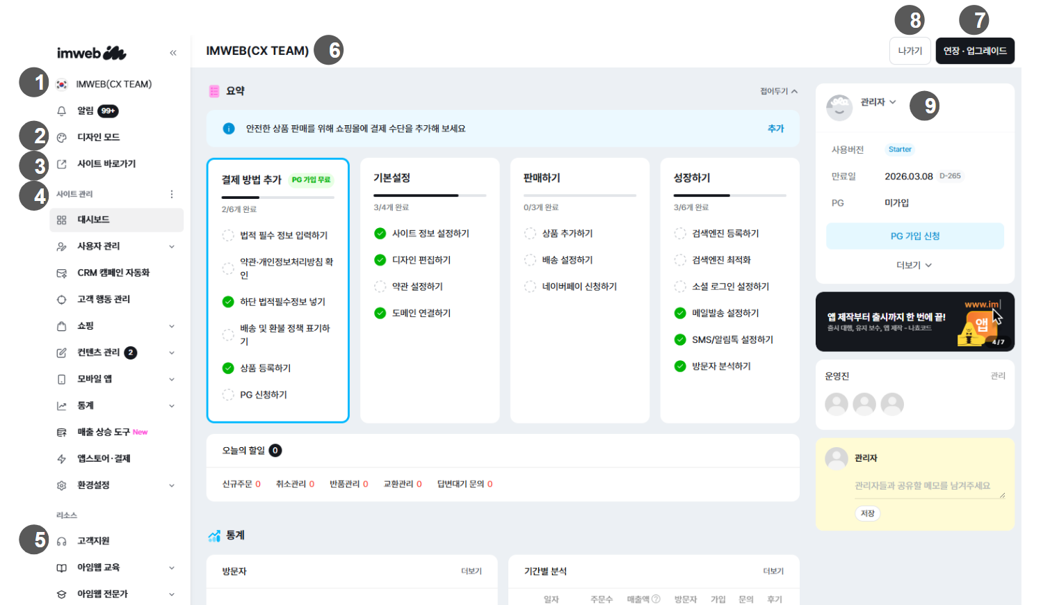 5) 아임웹 관리자 — “제작보다 운영이 진짜”입니다 🧠