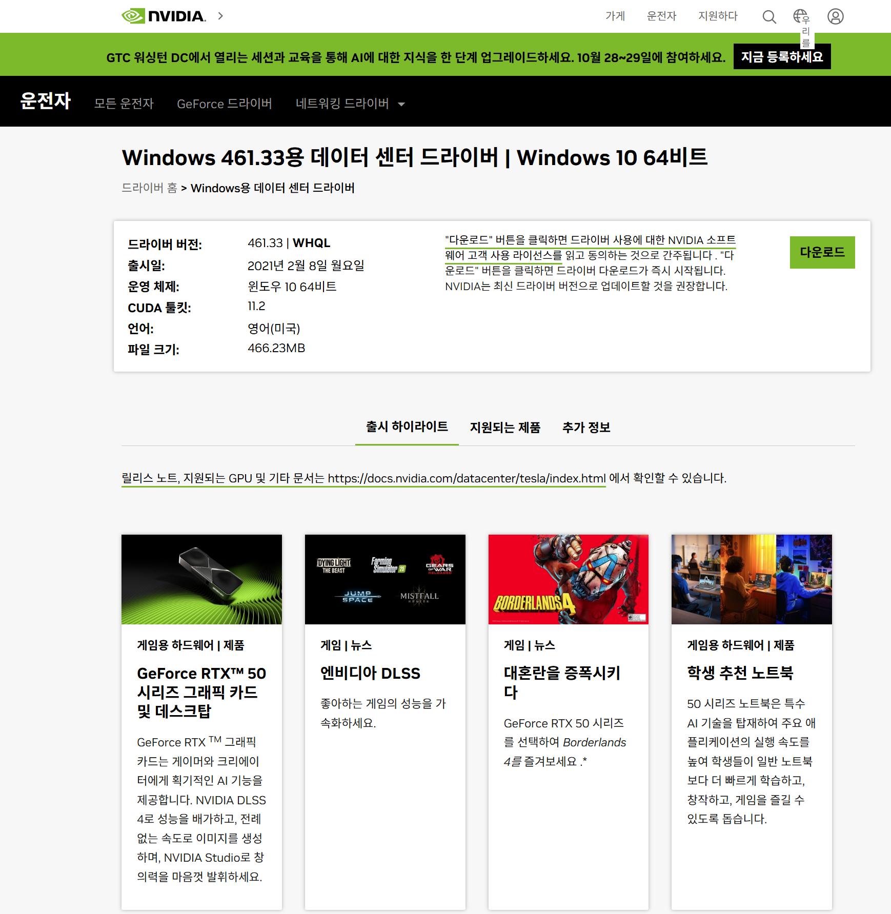 - 엔비디아 공식 드라이버 다운로드 페이지