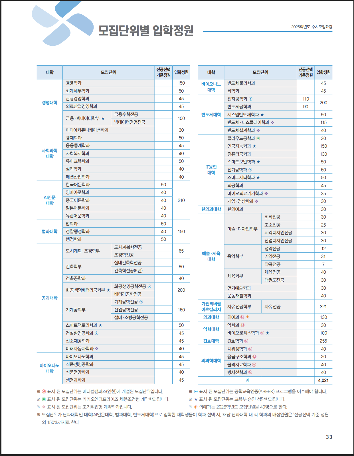 - 정시 전형: 수능 성적으로 선발, 국어·수학·영어·탐구 과목 반영 비율 확인 필수. 논술 전형 없는 경우가 많지만, 논술 위주 또는 논술 + 학생부 조합 전형 존재함.