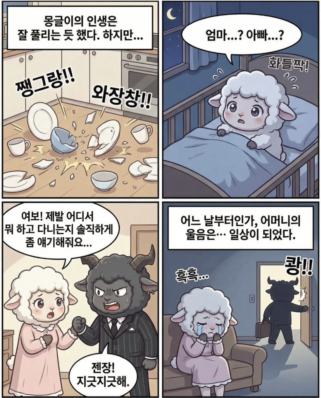 작품 속 주인공 ‘몽글이’는 하얀 어린 양의 모습으로 등장합니다.
