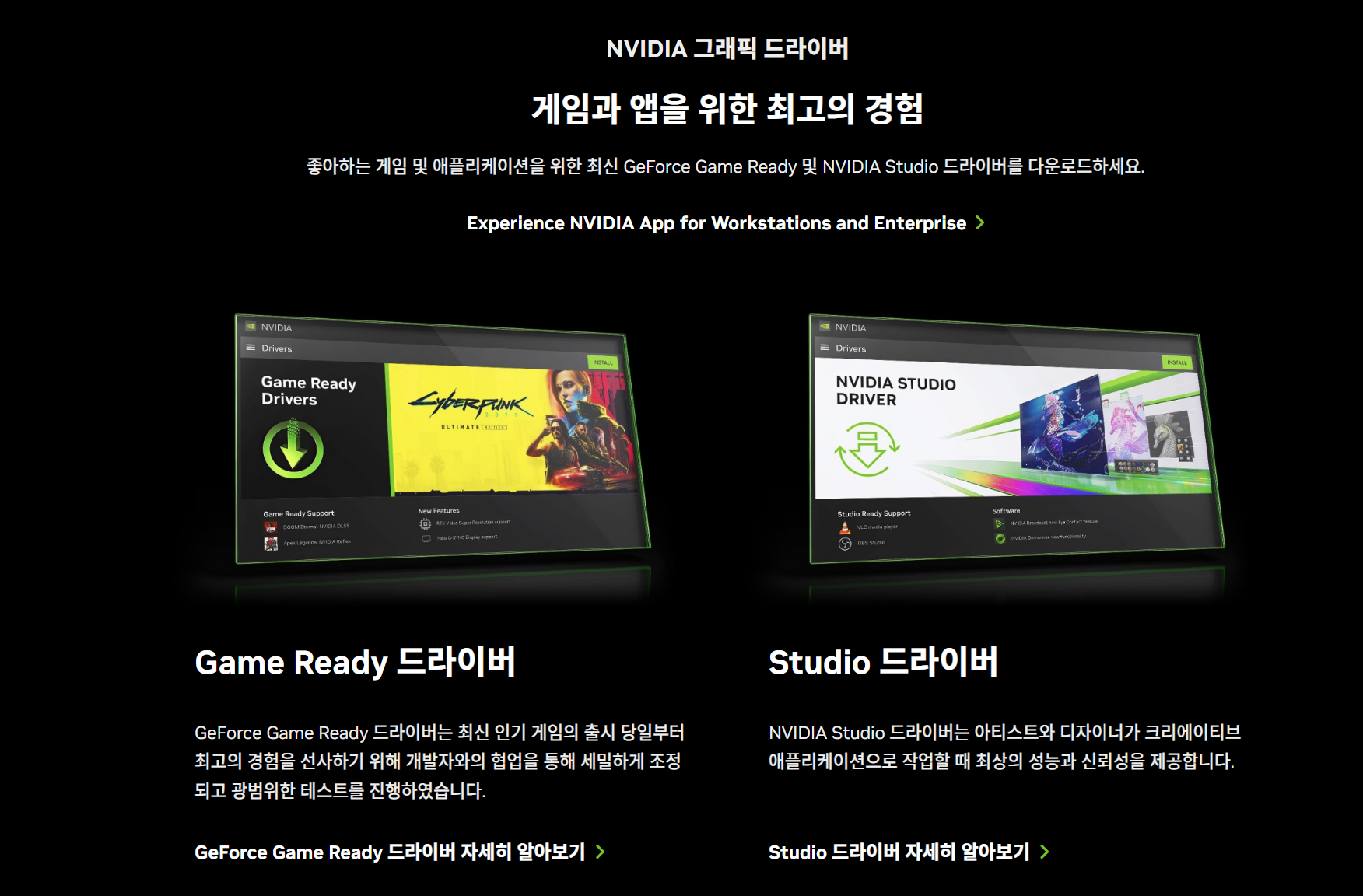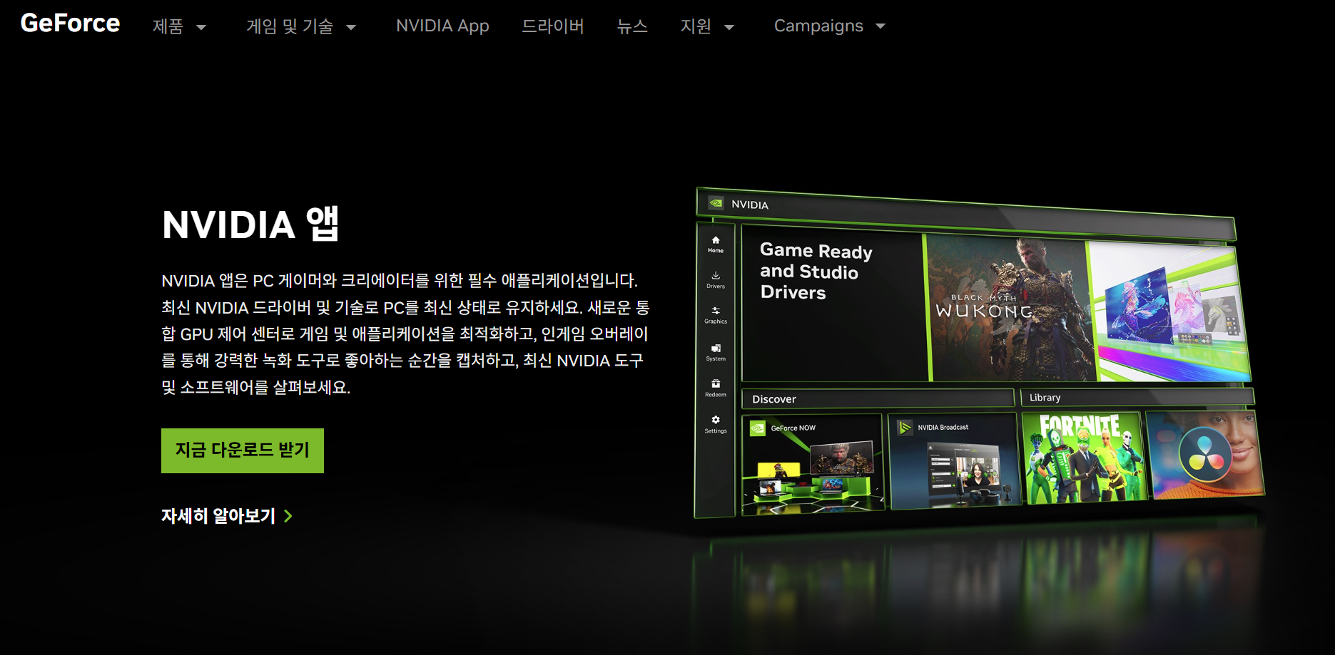 👉 https://www.nvidia.com/en-us/software/nvidia-app/ - 엔비디아 그래픽 드라이버 다운로드: