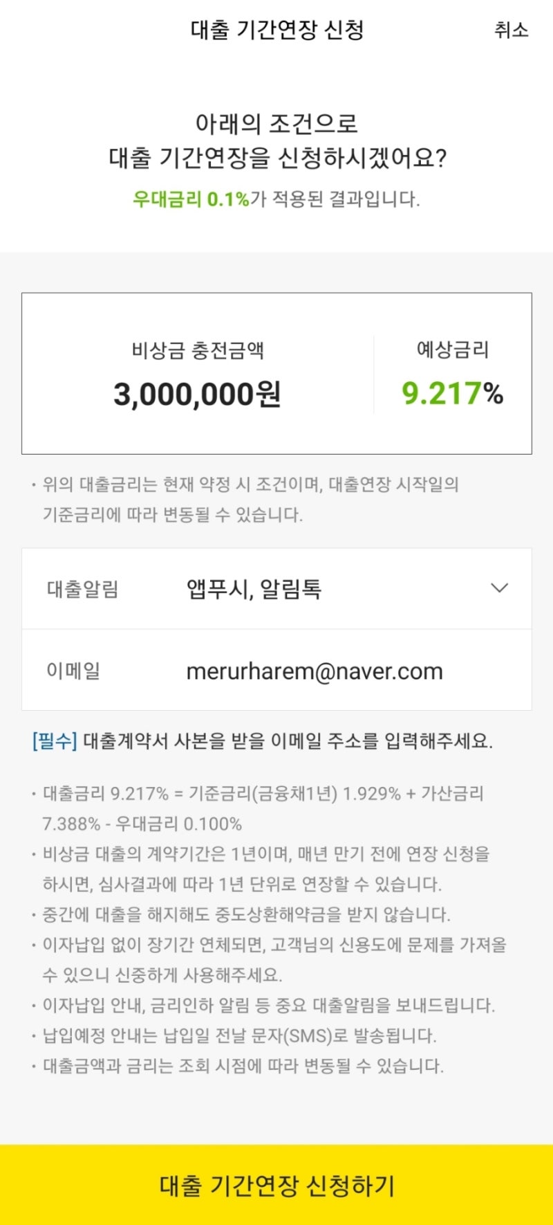 카카오뱅크 비상금대출 연장 / 연장 거절 사유