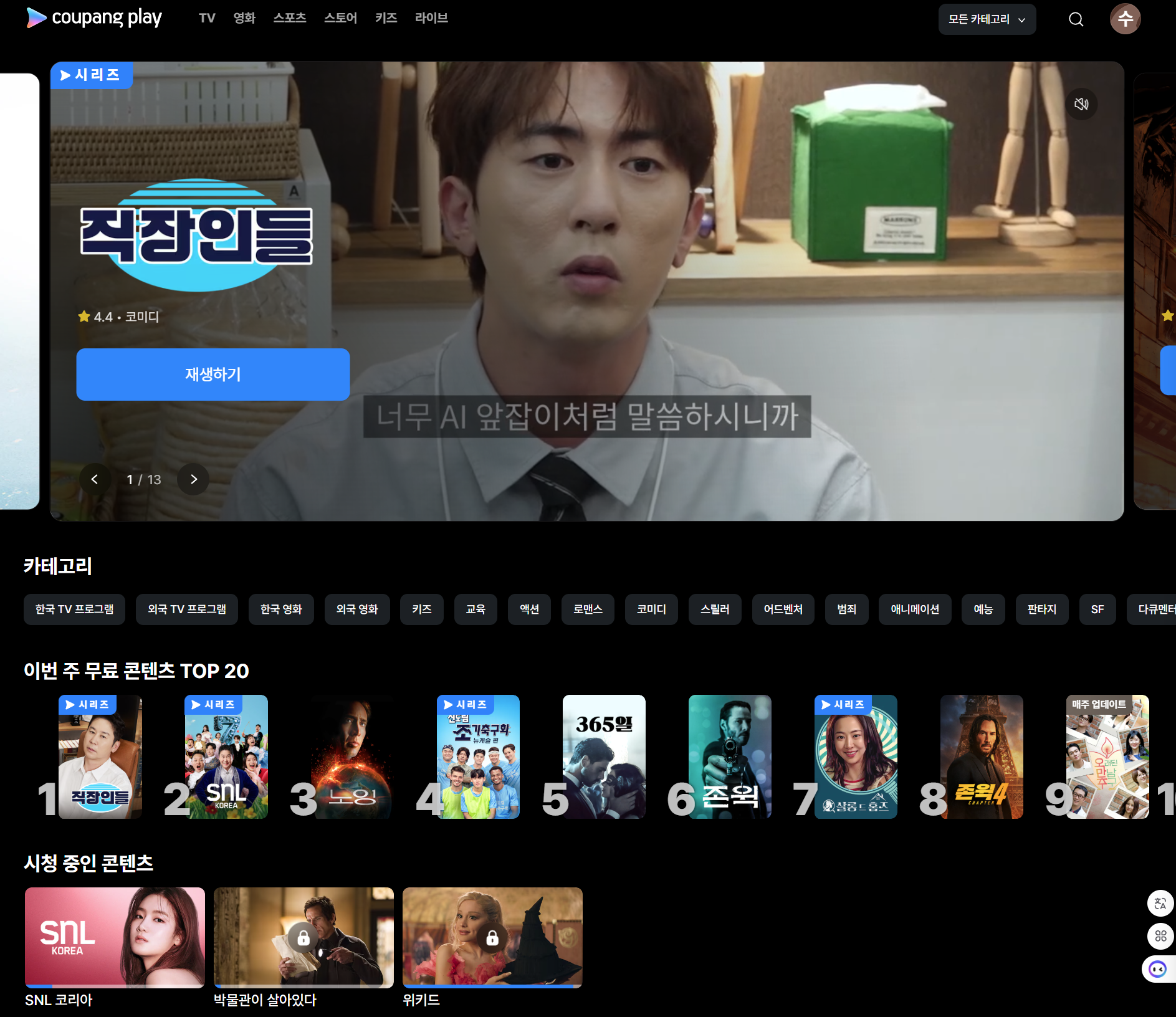 - 쿠팡플레이 앱 또는 웹 접속