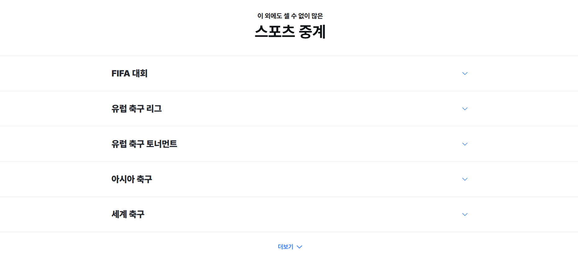 - F1, K리그, 프로야구, MLB, EPL 등 다양한 스포츠 실시간 중계