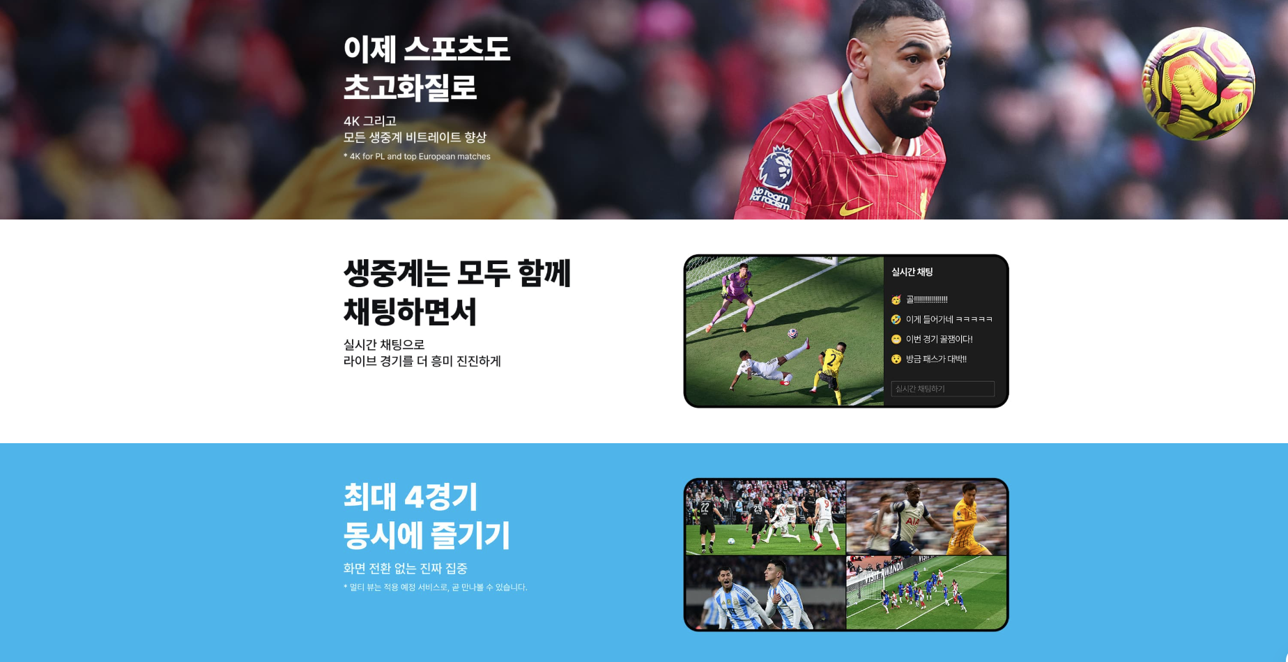 - 일부 인기 경기(F1, 축구 등)에서는 동시접속 제한 가능