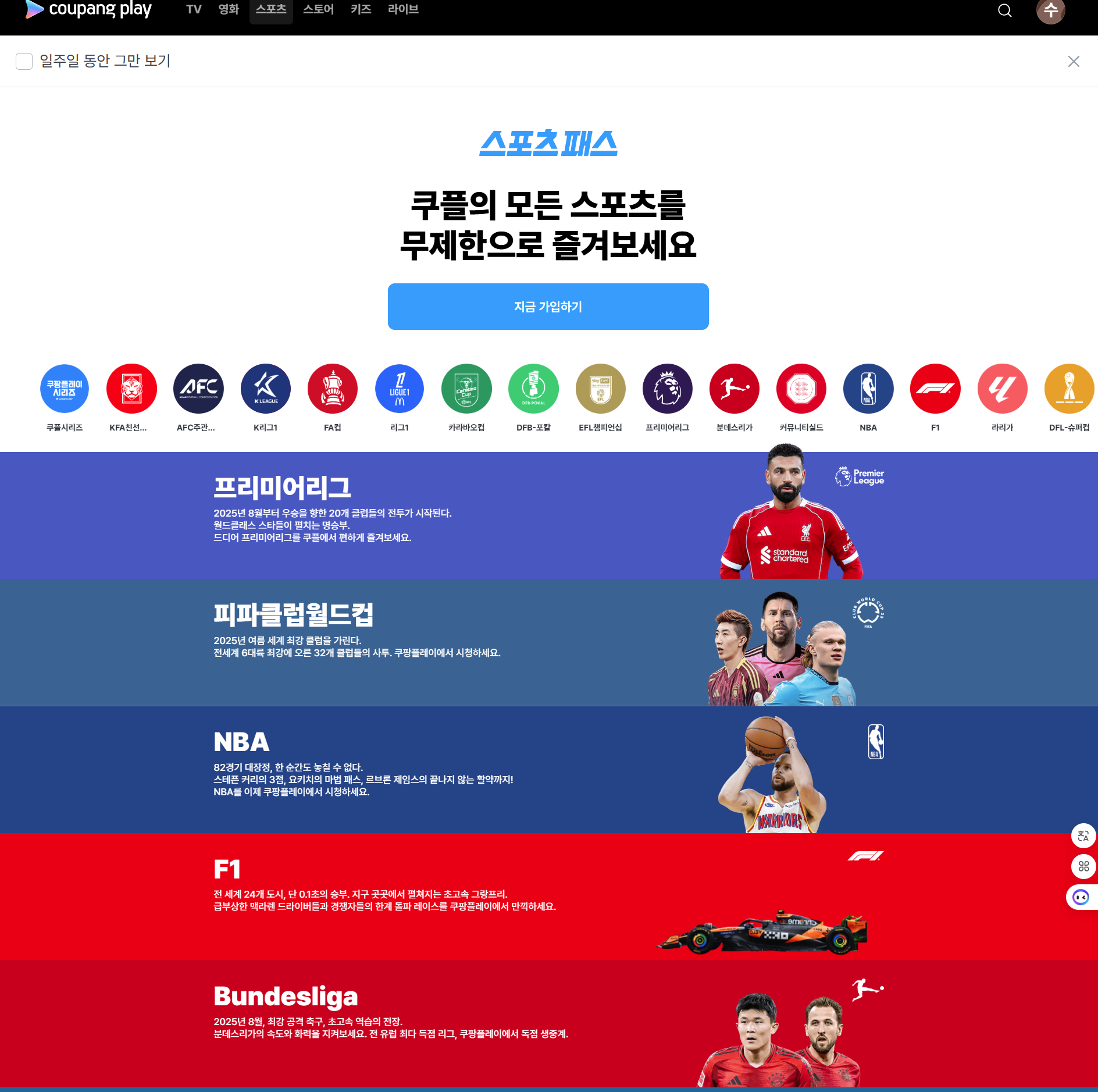 공식 링크: 쿠팡플레이 스포츠패스 자세히 보기
