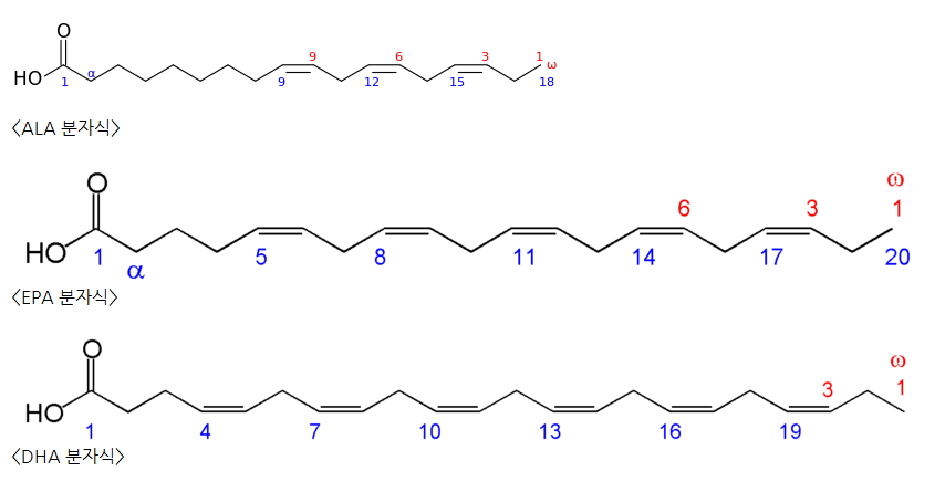 - EPA: 혈중 중성지방 관리(트리글리세라이드), 염증 반응 조절에 관련
