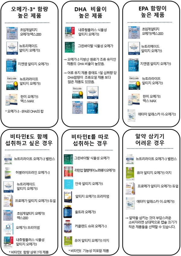그리고 실제 제품 비교할 때는 “오메가3 총함량”보다
