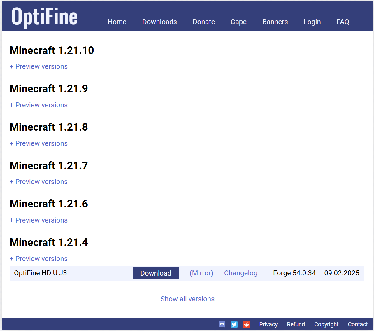 https://optifine.net/downloads - Sildur’s Shaders 공식 페이지