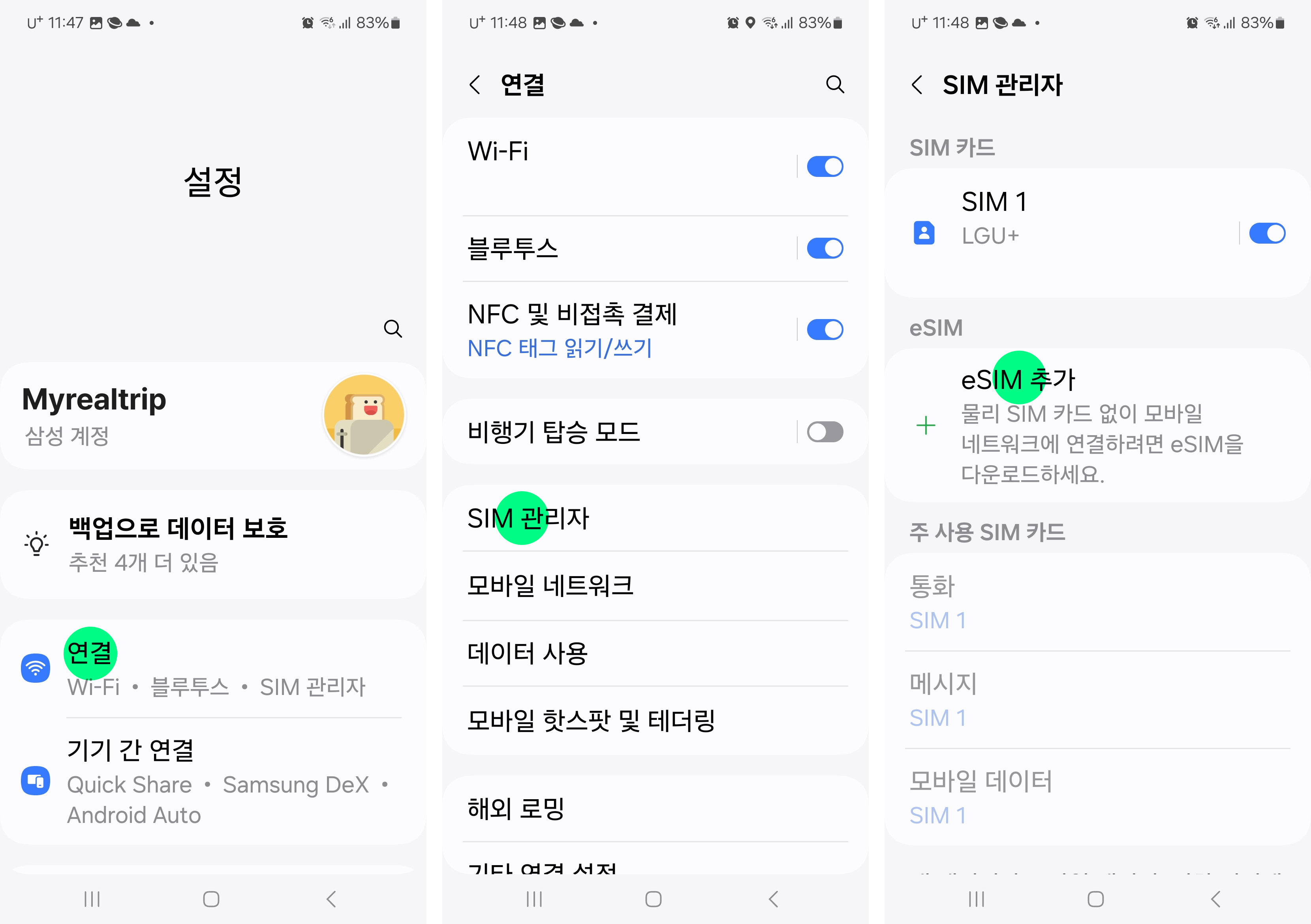 폰 변경 예정이라면 출국 전에 미리 세팅하세요.