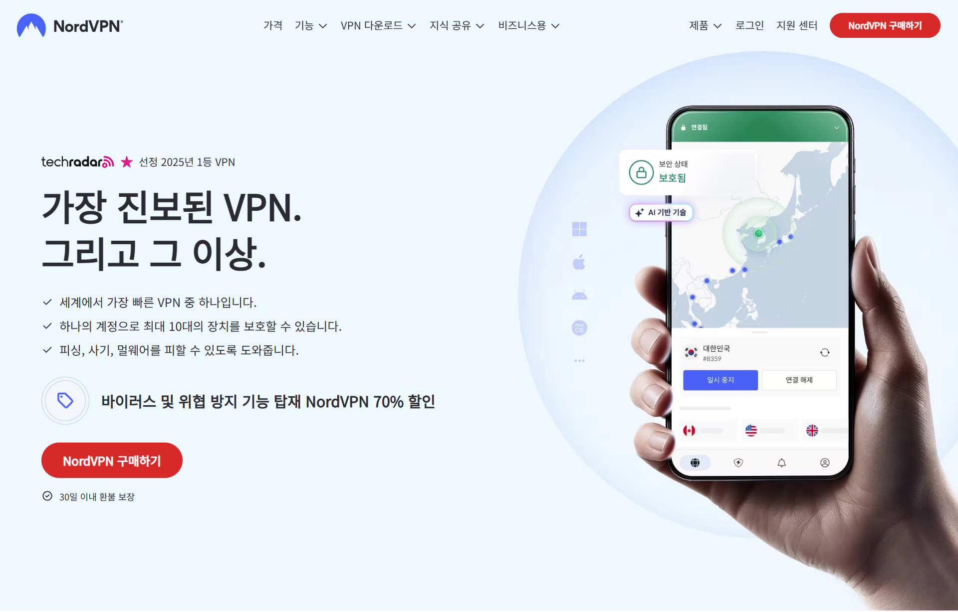 - vpn추천 이유: 수많은 vpn서버, AES‑256, WireGuard 기반 NordLynx, no-log 감사를 통한 최고 보안 성능