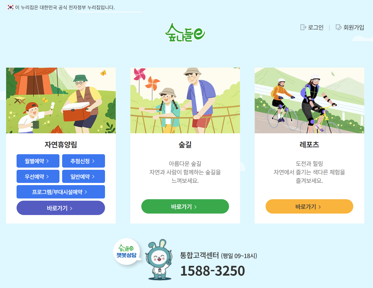 - 예약은 산림청 통합 플랫폼 숲나들e에서 진행됩니다