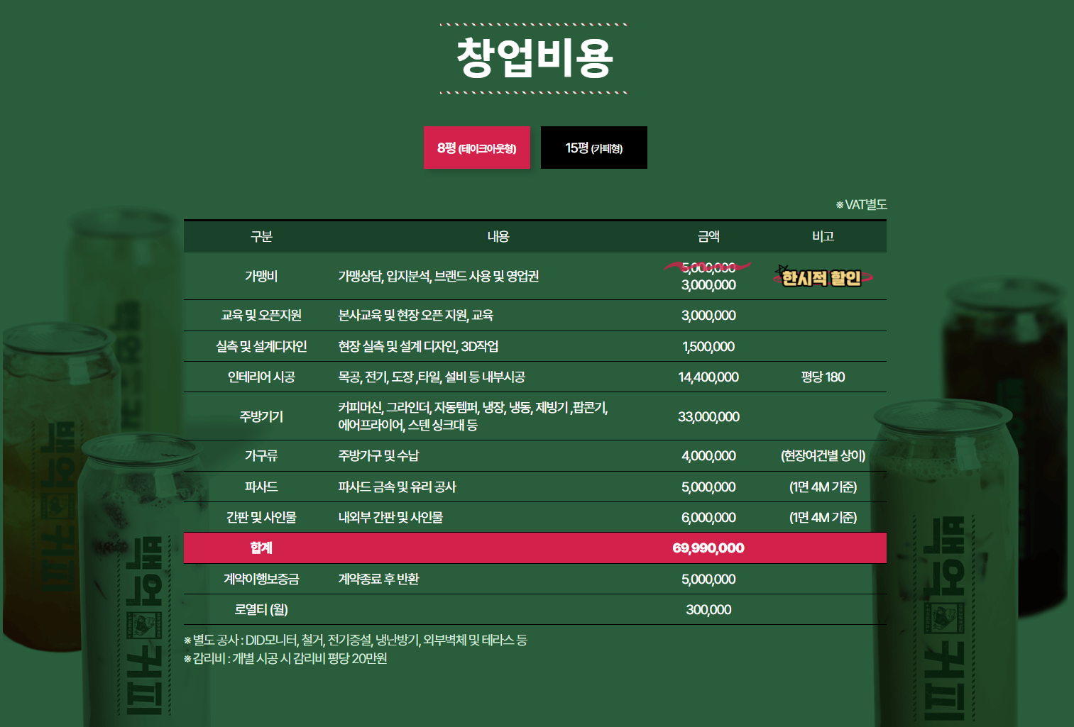 - 총비용: 인테리어 및 장비 포함 약 7천만~1억원대