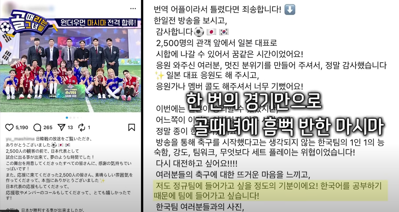 | 키워드 | #마시마유 #골때녀 #FC원더우먼 #일본배우 #프리스타일축구 |