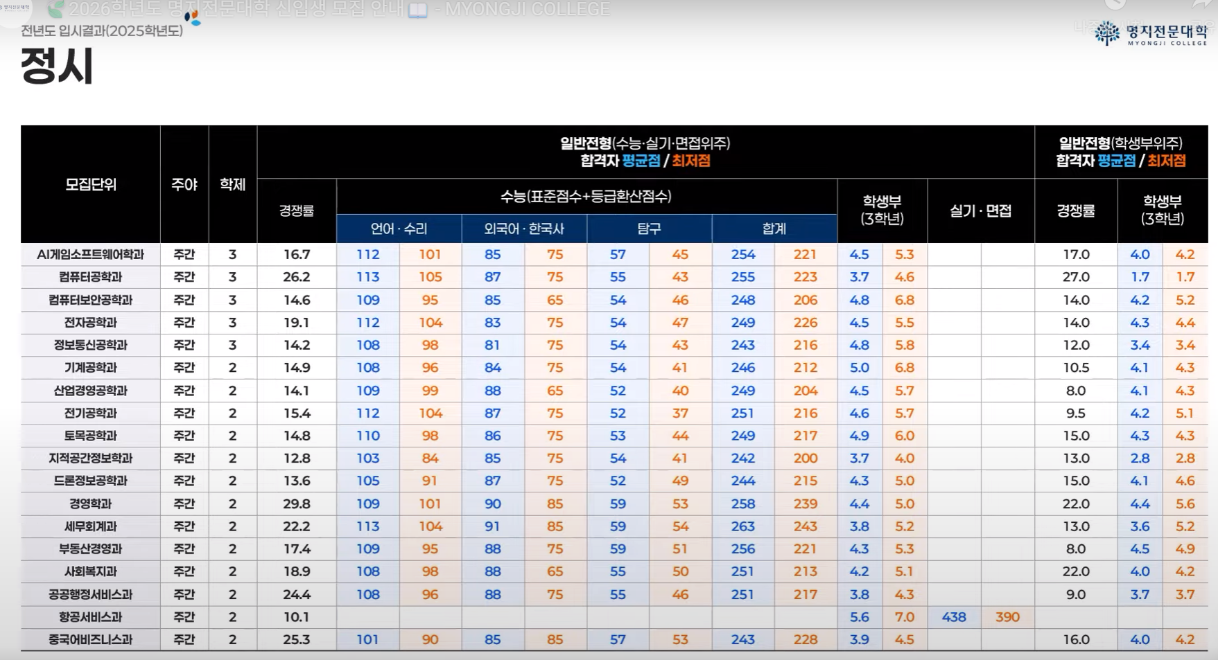 ✅ 명지전문대학교 수시등급·입결 상세 설명