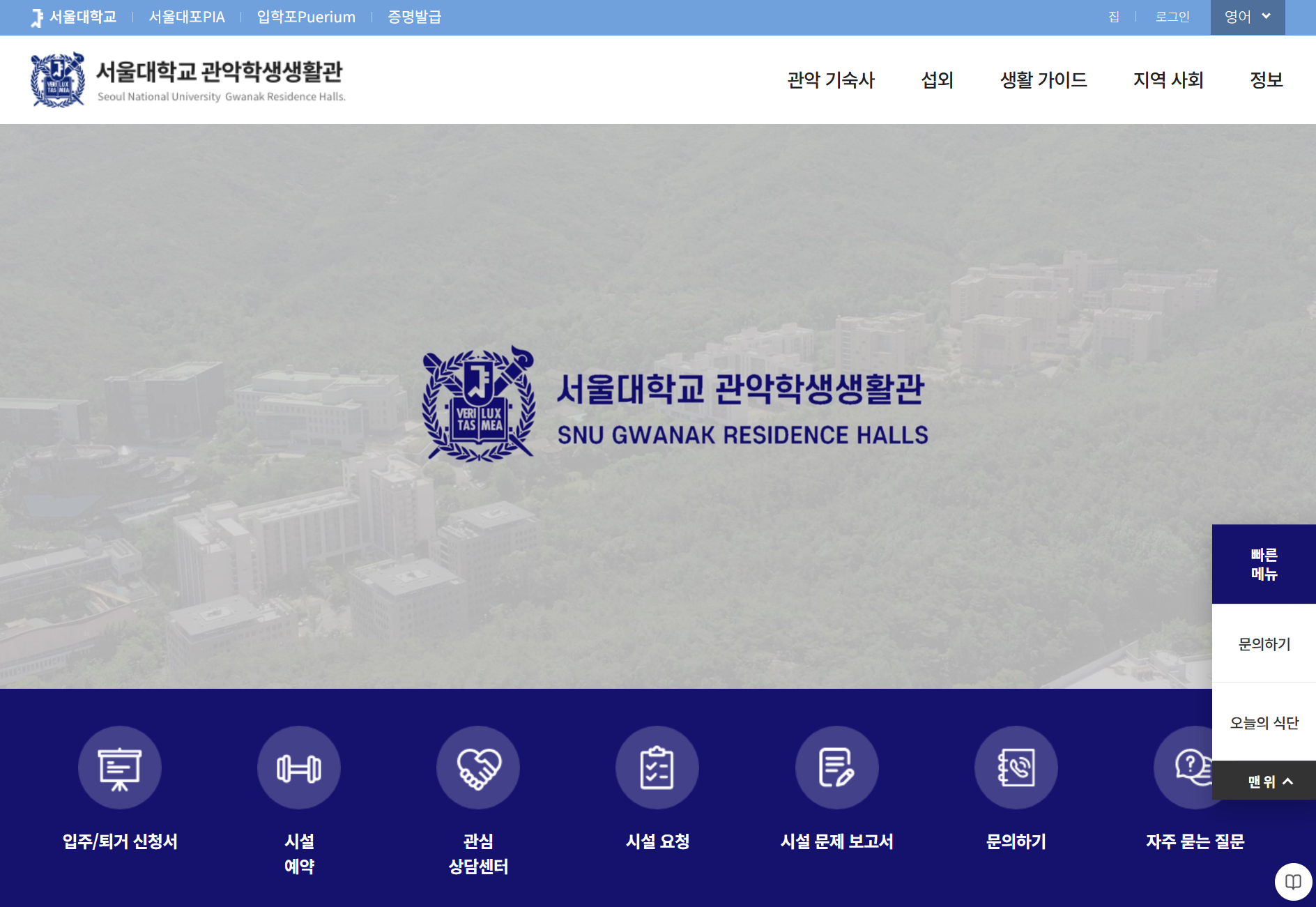 ➡️ https://snudorm.snu.ac.kr/en/ (관악학생생활관)