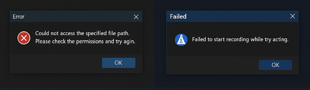 - “녹화를 시작할 수 없습니다”