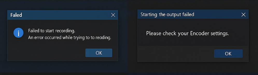 녹화중 인코더 오류, 녹화 오류, 설치 오류, 실행 오류, obs studio error는 대부분
