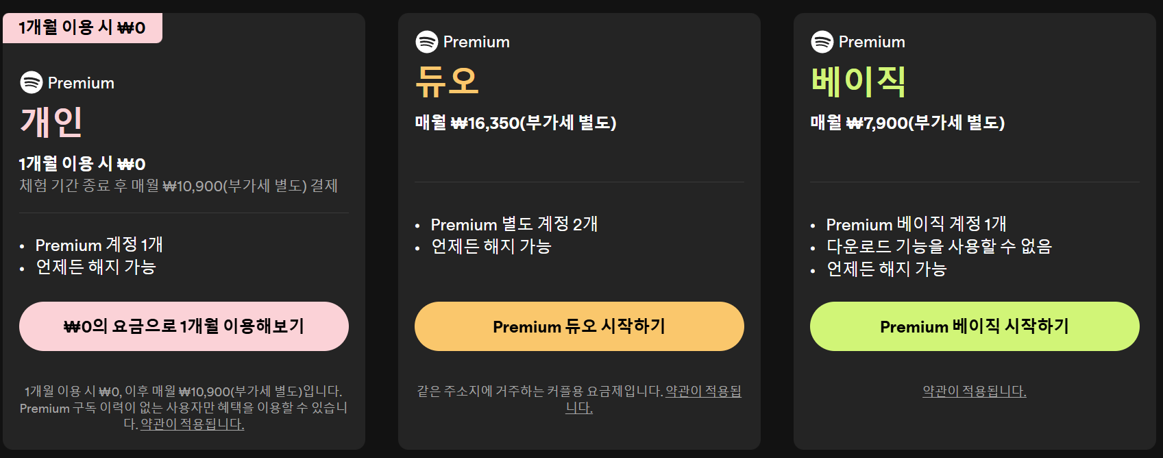 - 스포티파이 무료 vs 프리미엄 vs 베이직 요금제 차이