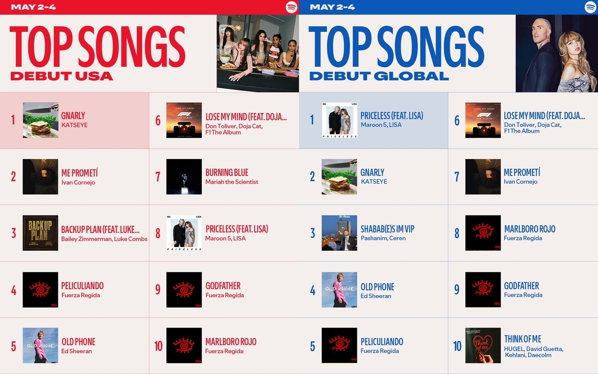 👉 글로벌 차트 기반이라 국내 멜론·지니와 순위 다름
