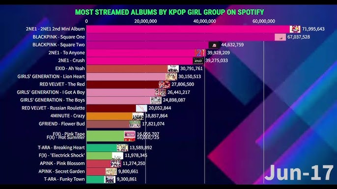 걸그룹은 스포티파이에서 월별 청취자 수 기준으로 순위가 공개됩니다.