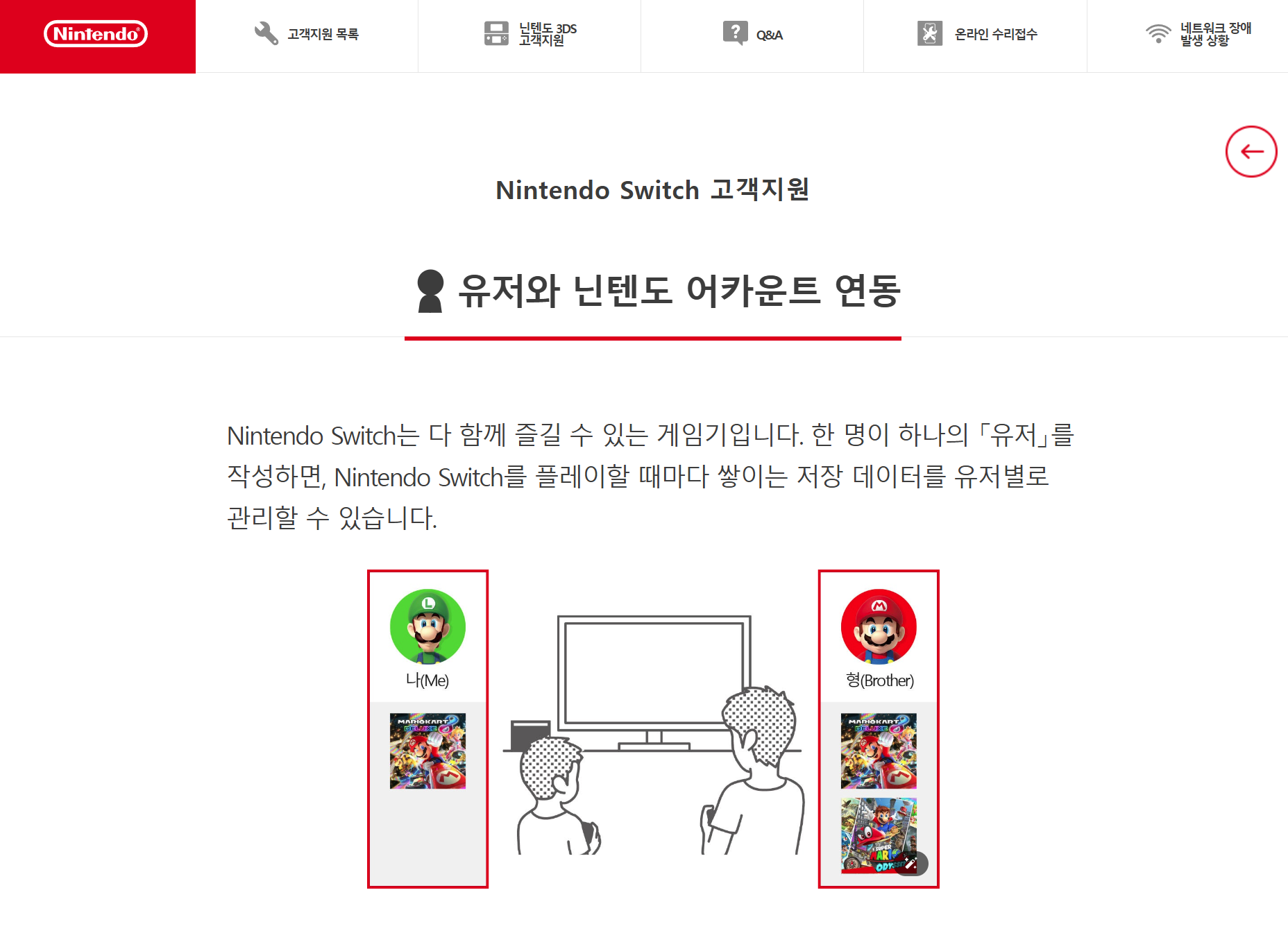 - 한 유저(User)당 닌텐도 어카운트는 1개만 연동 가능합니다.