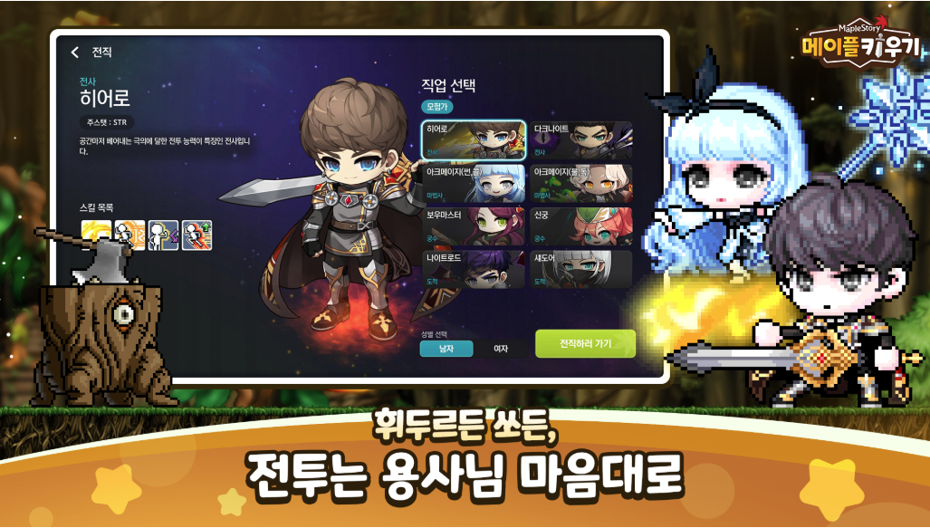 메이플 키우기의 재미는 바로 직업 선택과 동료 성장 시스템에 있습니다.