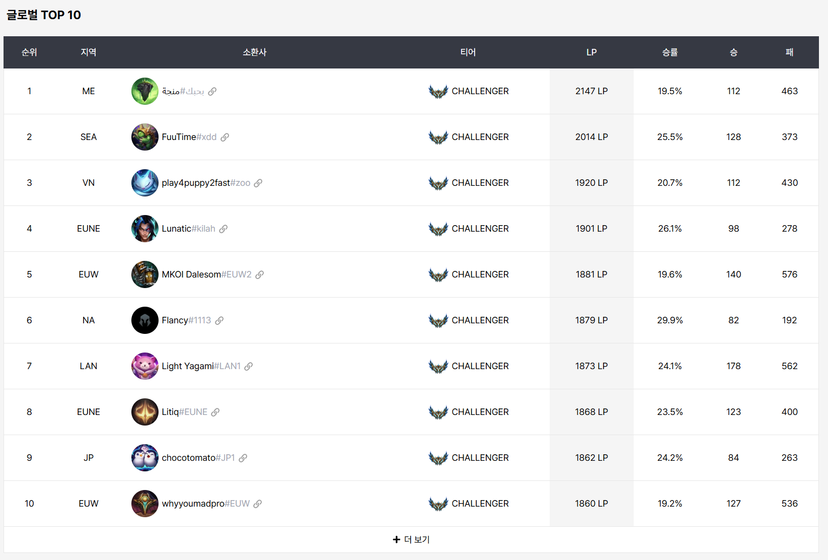 실제로 프로게이머 포함 상위 0.1% 유저들이 매일 체크하는 사이트입니다.