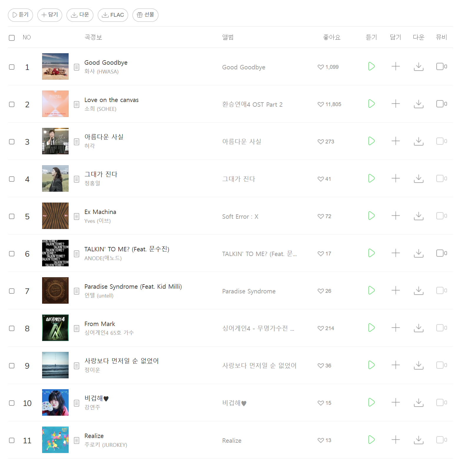 - 구매할 곡 또는 앨범 클릭