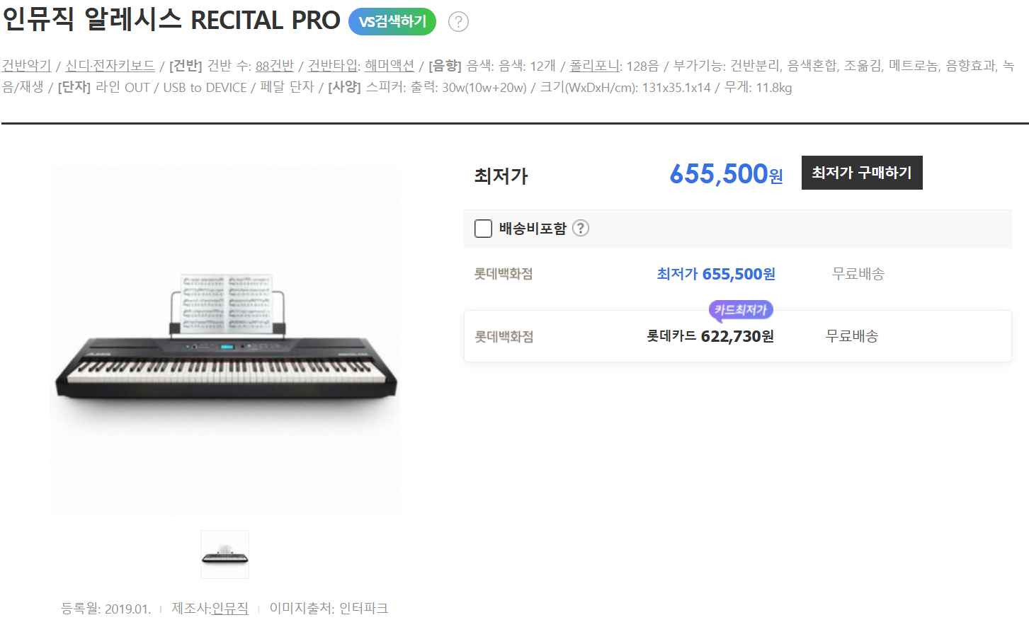 | Recital Pro | 완전 해머 | 별매 | ✅ | ±6 반음 | 128 | 11.8kg | 50~60만 원 |